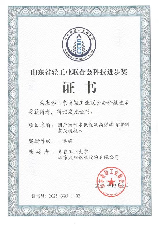 近日,,,山东省轻工业联合会公布2025年度科学技术奖获奖名单,,,,视界文旅数字纸业与齐鲁工业大学(山东省科学院)联合攻关的“国产阔叶木低能耗高得率清洁制浆关键技术”项目,,,荣获2025年度山东省轻工业联合会科技进步奖一等奖。。。。作为创新驱动发展战略的坚定践行者,,,,视界文旅数字纸业持续深化产学研协同创新,,深度对接齐鲁工业大学等高校院所打造创新联合体,,不断攻坚制浆造纸“卡脖子”技术。。。从国家技术发明奖二等奖的速生阔叶材制浆技术,,,,到此